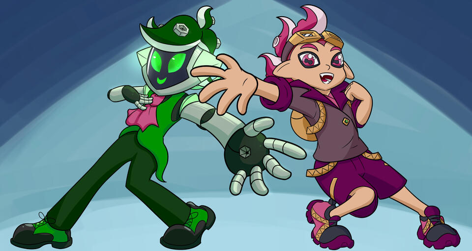 EXAMPLE: Simple character halfbody with shading/lighting and simple background and effects